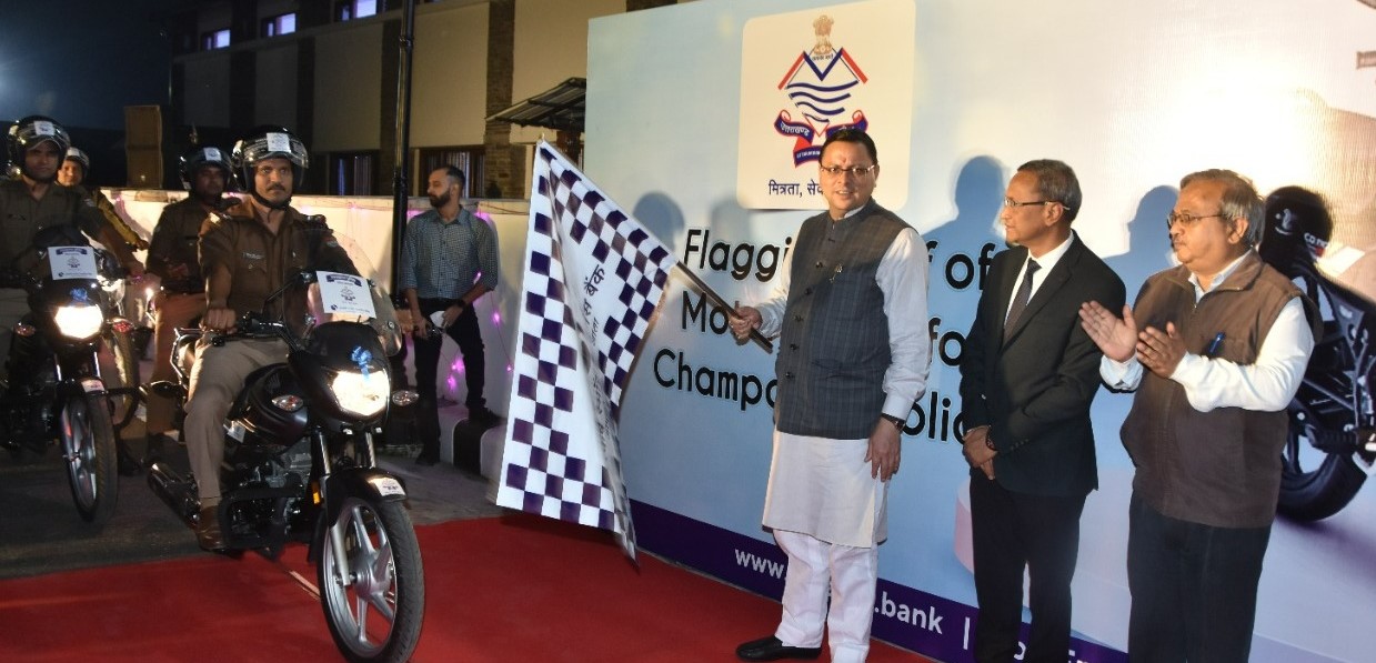 बैंक की सीएसआर योजना के तहत चम्पावत पुलिस को 10 मोटरसाइकिलों को दिखाई हरी झंडी।